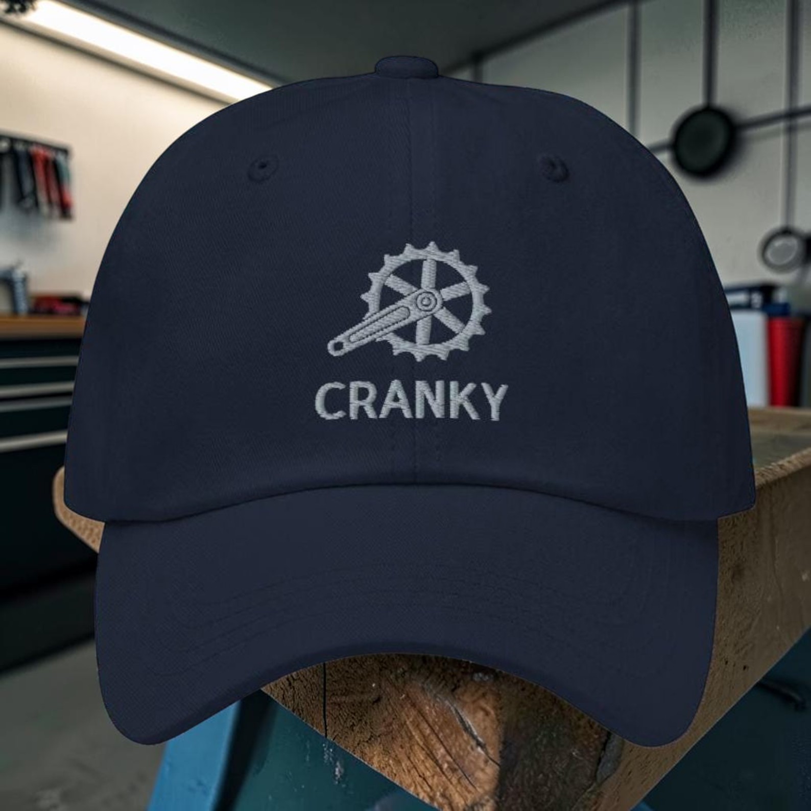 - Embroidered crankset and “CRANKY” design