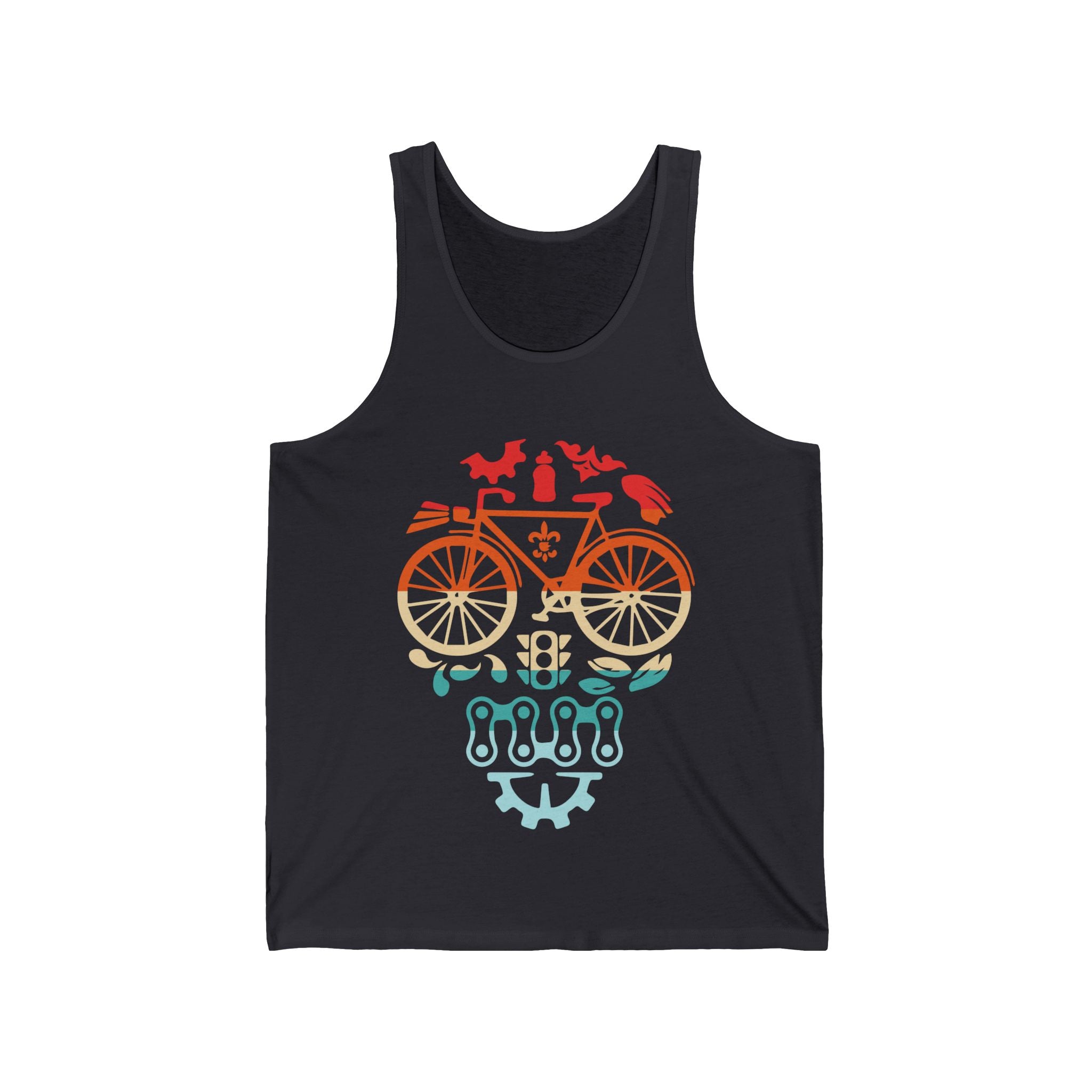 This Cycling Skull Tank Top is perfect for bike lovers with a edgy style. It gives off a rebellious and adventurous vibe, fitting seamlessly into the wardrobe of someone who enjoys cycling and has a passion for unique fashion. Ideal for the bike enthusiast who wants to stand out and make a statement, suitable for holidays like Halloween or as a gift for a cyclist.