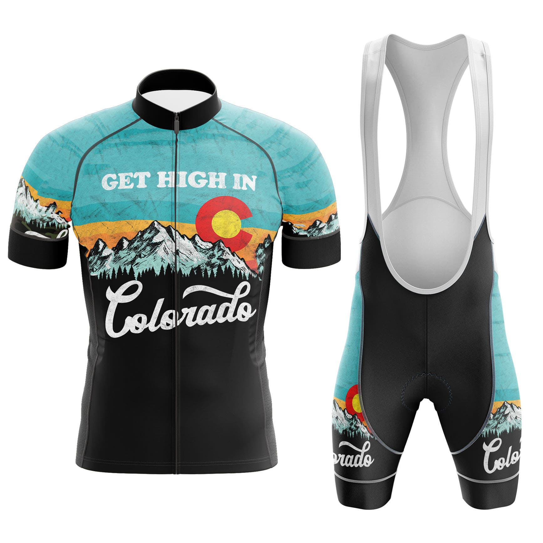 Get High in Colorado Retro State Flag Mountains Retro Cycling Jersey Kit