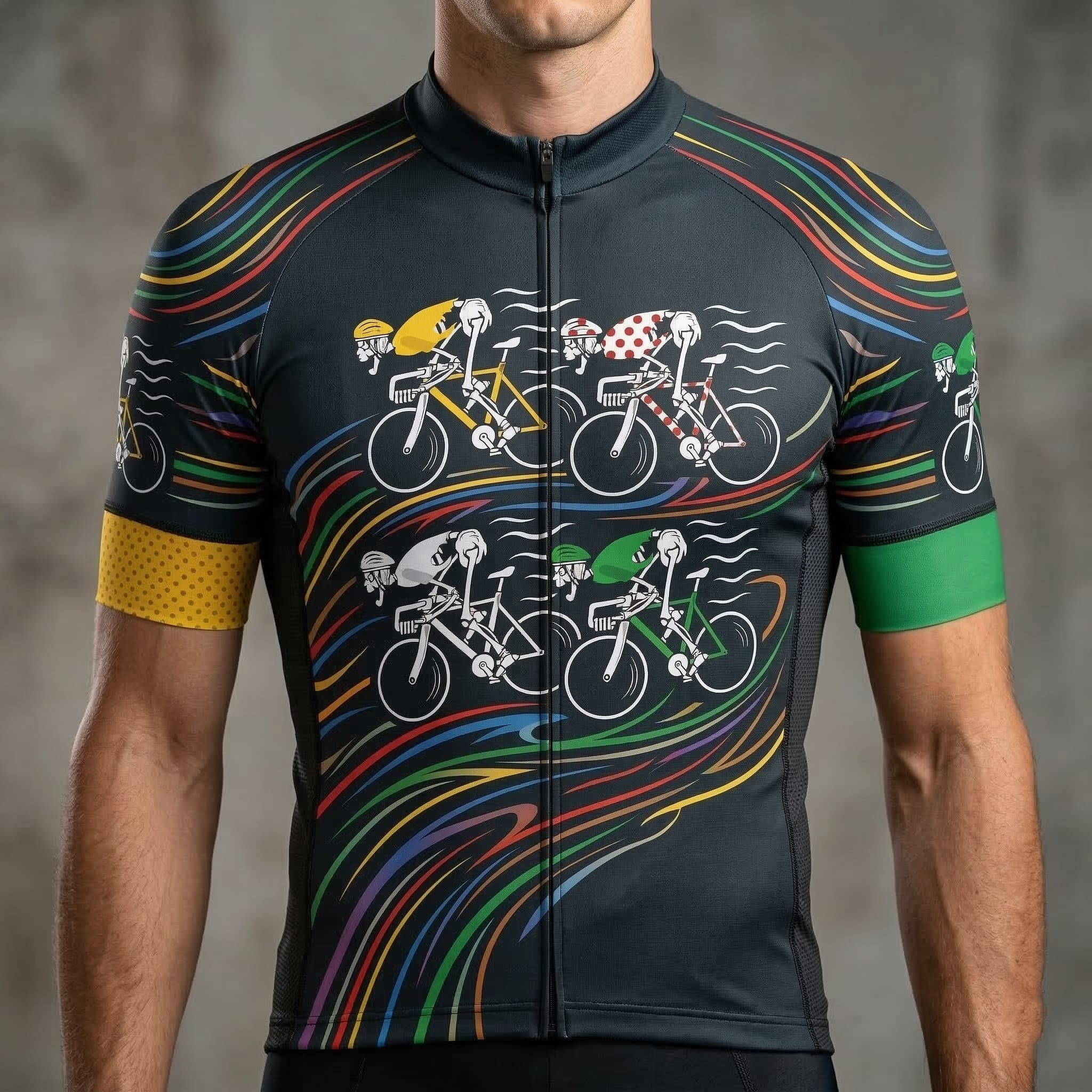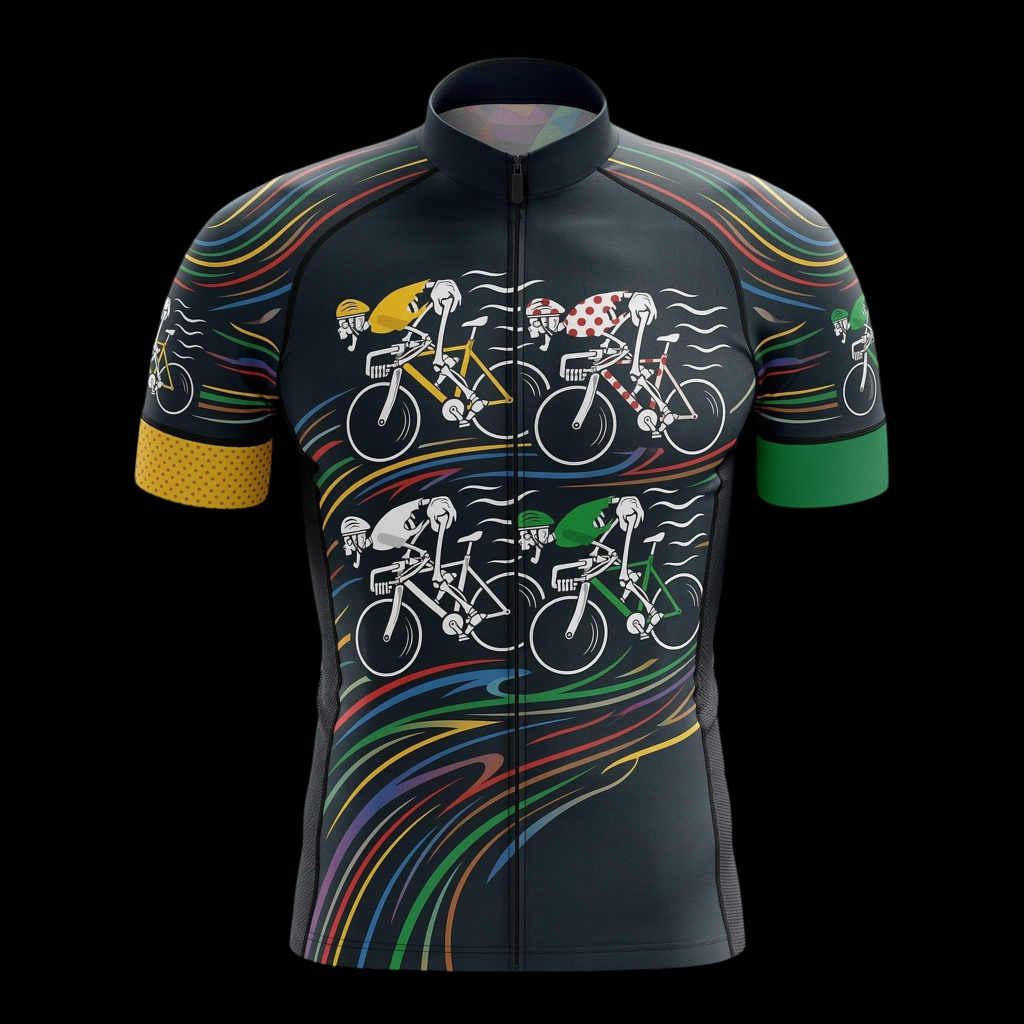 Stand out from the peloton with this eye-catching Grand Tour cycling jersey, featuring a unique and vibrant design. Imagine yourself conquering every climb in this stylish and comfortable cycling bicycle shirt!