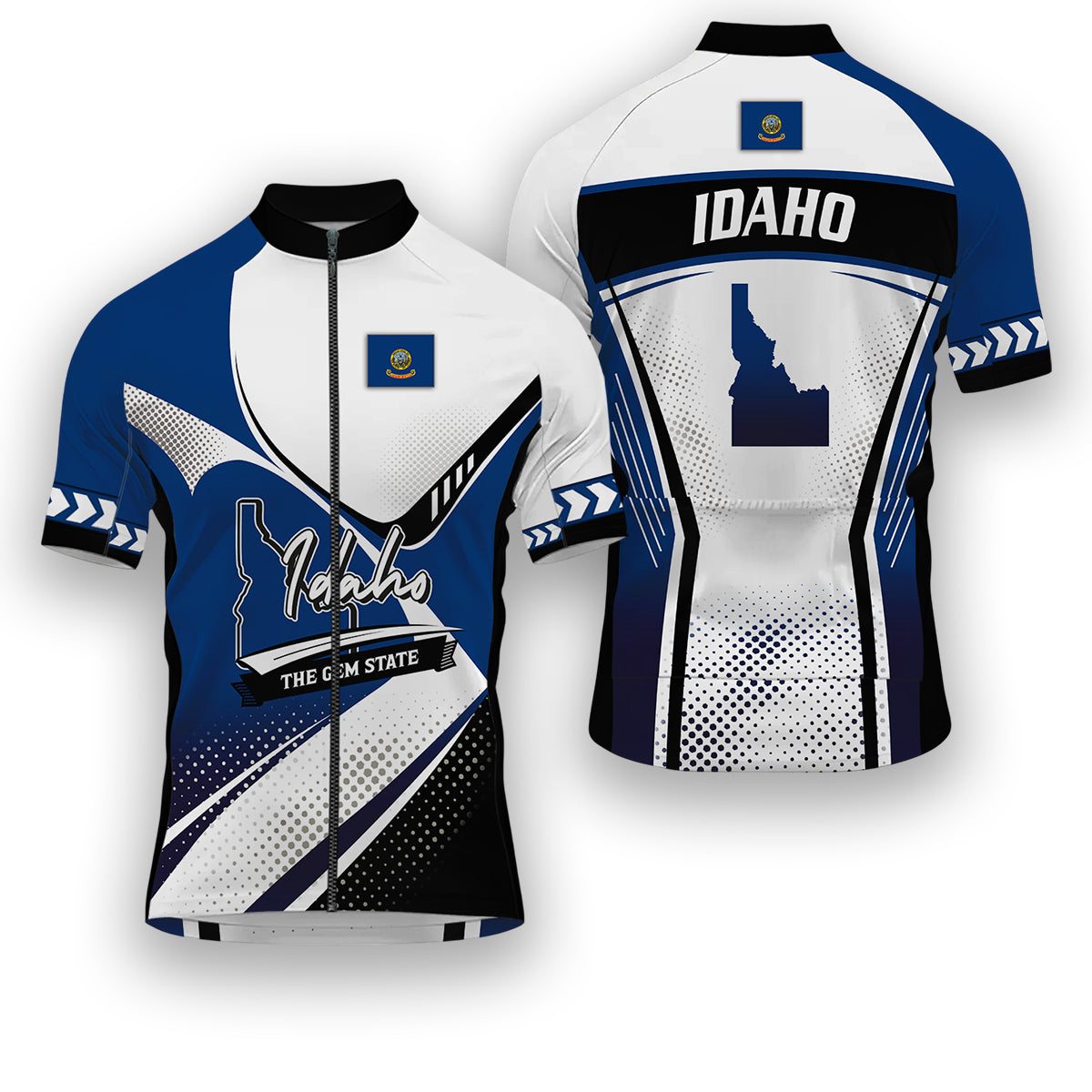 Are you passionate about cycling and the great state of Idaho? Our Idaho States Cycling Jersey combines performance with a unique, vintage-inspired design. Featuring a distinctive Maps Halftone pattern, this jersey is perfect for both men and women. Crafted for comfort and durability, this full kit ensures optimal performance on any ride. Experience the perfect blend of classic style and modern functionality. Show your Idaho pride while enjoying your cycling adventures. Order your Idaho States Cycling Jersey today and conquer the road in style! Perfect for any cycling enthusiast looking for a stylish and functional piece of apparel.
