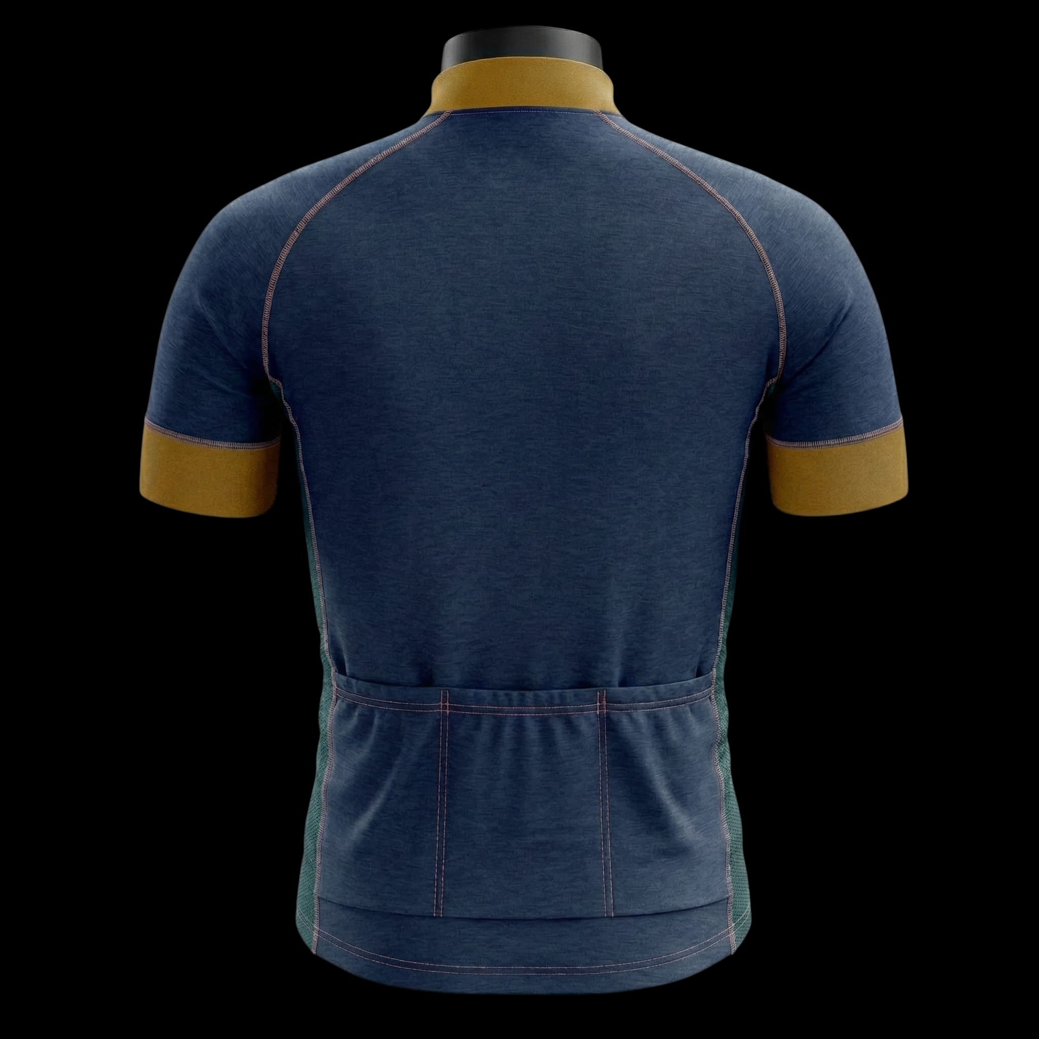 - Stylish Details: A navy blue body with mustard yellow collar and sleeve cuffs and teal side panels.