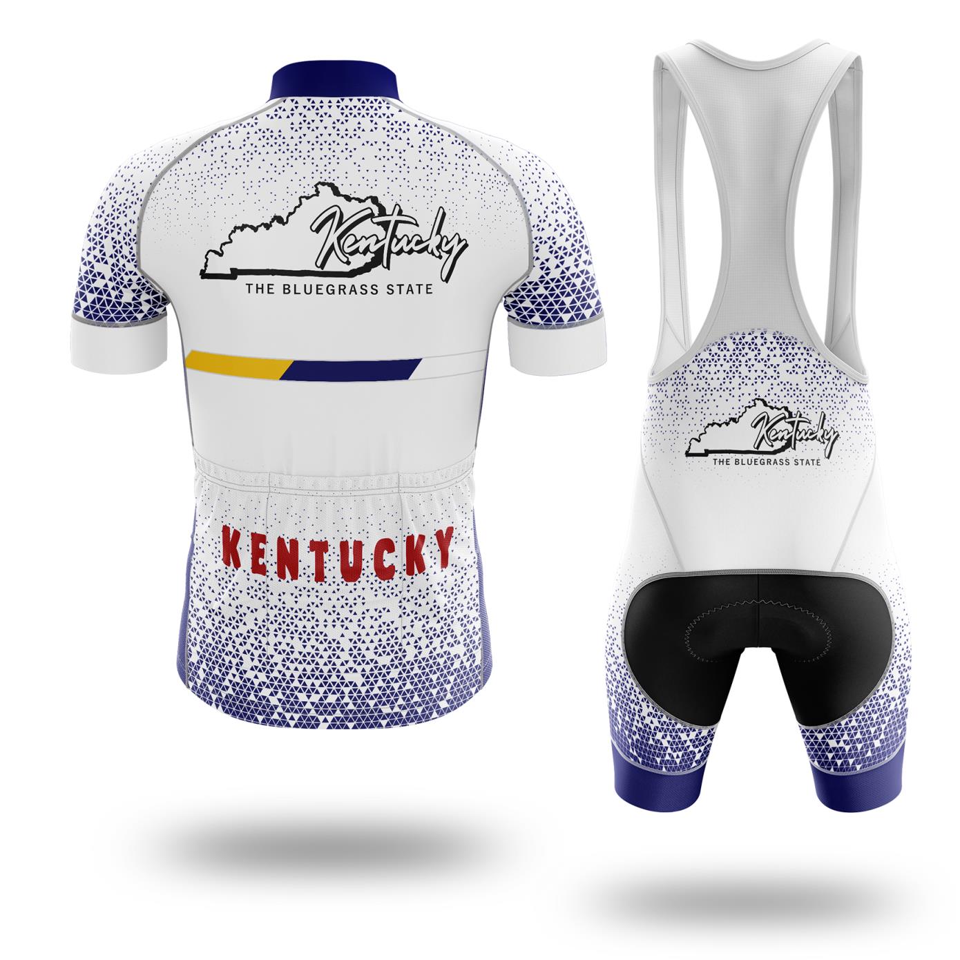 Kentucky Cycling Jersey and Bib Short Set, Kentucky Map The Bluegrass State Cycling Jersey - Short Sleeve Cycling Jersey-White