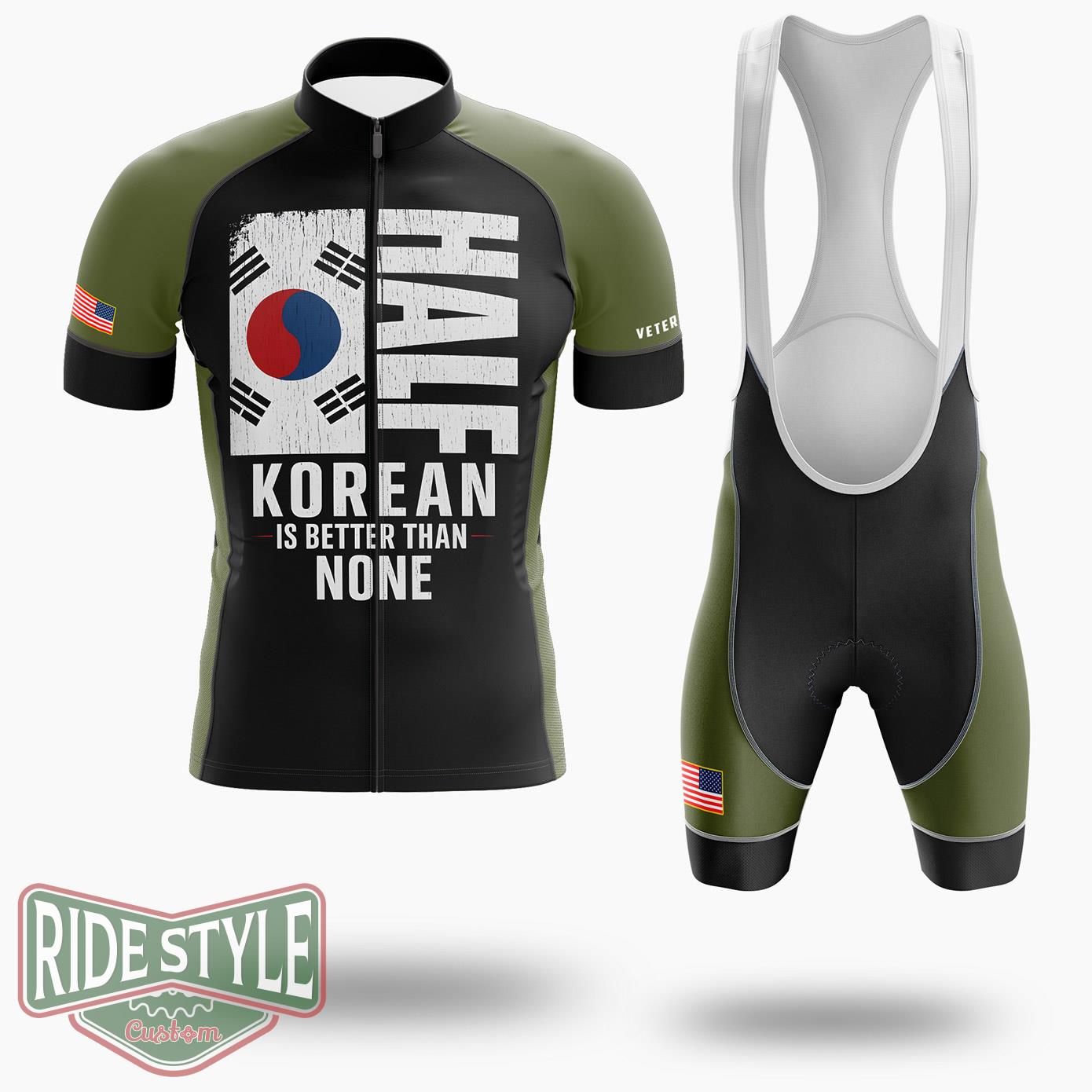 The jersey features a prominent display of the Korean flag, incorporating its vibrant colors and symbolic elements. The design harmoniously blends the traditional flag with modern cycling aesthetics, creating a visually appealing and meaningful garment. The phrase “Half Korean Is Better Than None” adds a touch of humor and inclusivity, resonating with individuals who embrace their mixed heritage. The overall composition is dynamic and engaging, ensuring that the jersey stands out while maintaining a sense of cultural pride.