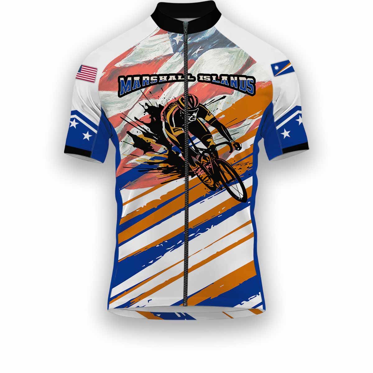 Are you proud of your heritage and your passion for cycling? This Marshall Islands Cycling Jersey with a USA Flag design is the perfect way to show it! Designed for both men and women, this high-performance jersey and optional full kit will keep you comfortable on any ride. Featuring breathable, moisture-wicking fabric and a vibrant, fade-resistant print, this Marshall Islands USA Flag Jersey is a must-have for any serious cyclist. Whether you’re training for a race or enjoying a leisurely ride, this USA Flag Cycling Jersey will help you perform your best while representing your pride. Complete your cycling wardrobe with this exceptional Men Women Cycling Full Kit. Order yours today and ride with pride!