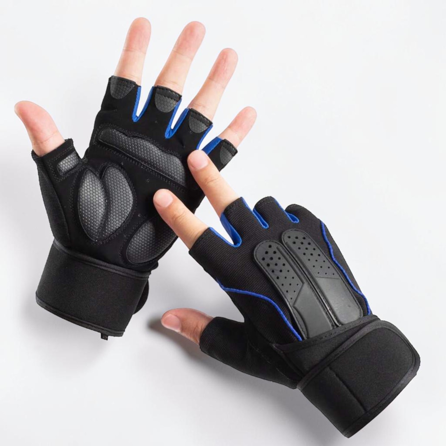 Pair Fitness Anti-Slip Protection Gloves With Wrist Support - One Size - Blue