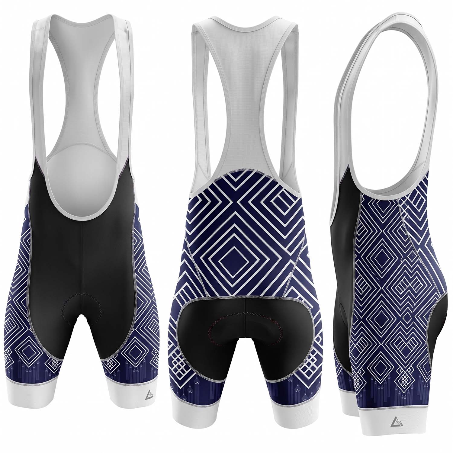 Unique Navy Blue Geometric Padded Cycling Bib Shorts