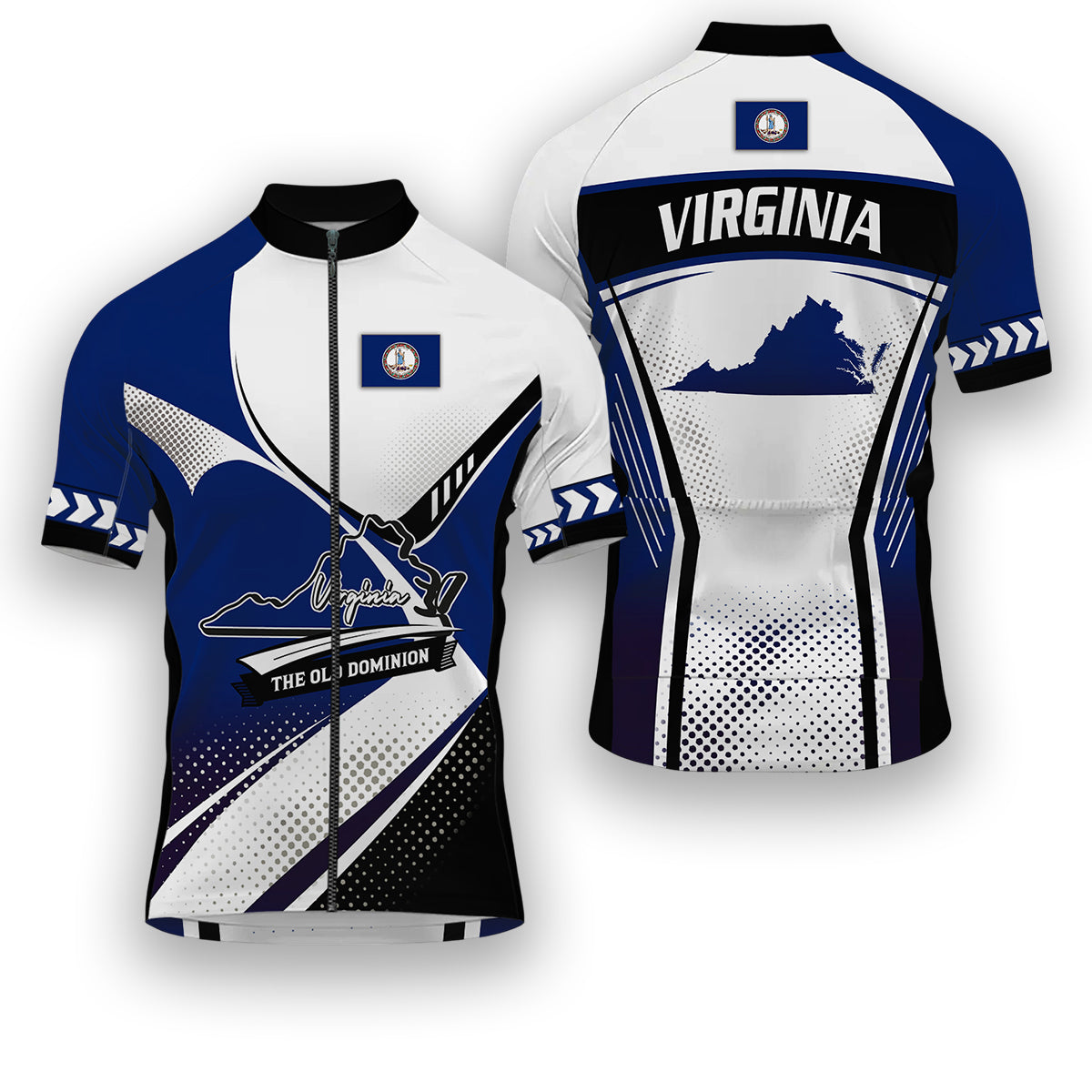 Virginia States Cycling Jersey, Maps Haftone Vintage Pattern Men Women Jersey Full Kit