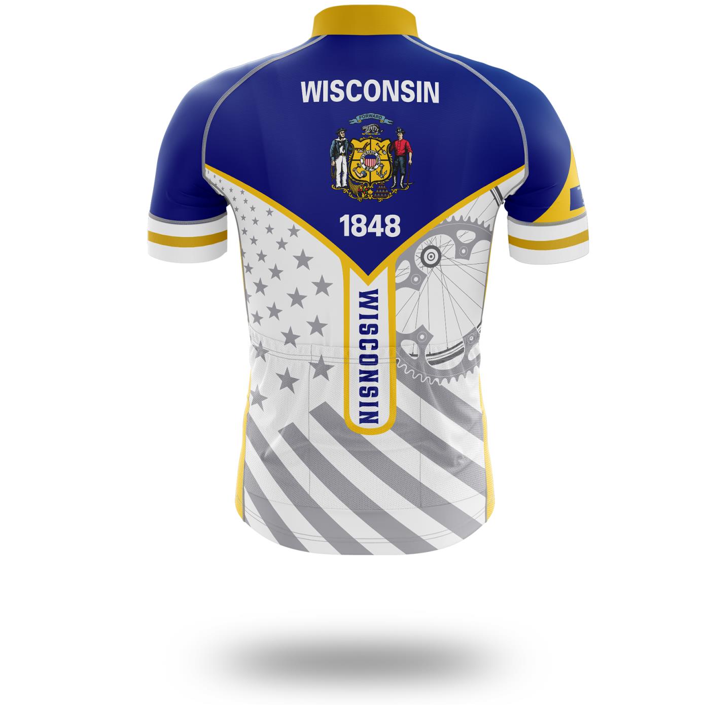 Wisconsin Flag Cycling Kit, Cycling Custom Your Name Jersey and Bib Short - Short Sleeve Cycling Jersey-White